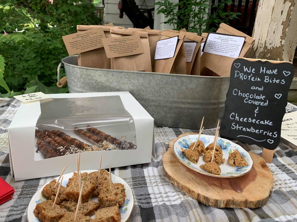 Saturday, July 25th from 10:00 am – 12:30 pm I will turn our English Garden into a “Taste/Browse/Enjoy/Shop” Experience! I will have tables set up and “Tastings” of various Sweet Treat Treasures from The Cottage Kitchen’s menu. You will have an opportunity to purchase some of these treats, as well, and mix and match or choose all one kind– as long as they last.